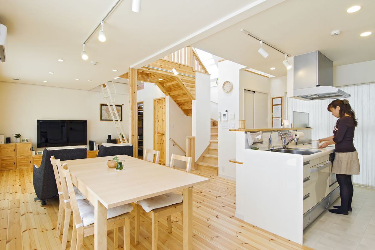 最大の特徴は、2階以上を一大空間にすることで得られる開放感と、なんとなくお互いの気配が感じられる一体感です。