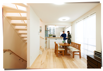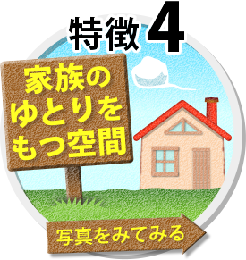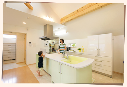 帰ってくると、優しく元気でにこやかなお母さんがいる、そんな家の中の太陽の様な存在の「お母さん」が、少しでも安らげる家、「お母さん」がゆとりを実感出来る家を是非提供したいのです。
