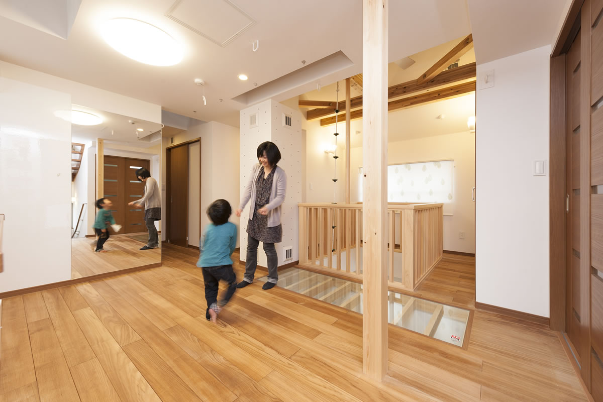 家の中に子供が自由に歩き廻ったり、走り廻ったりする場所を造りましょう。
