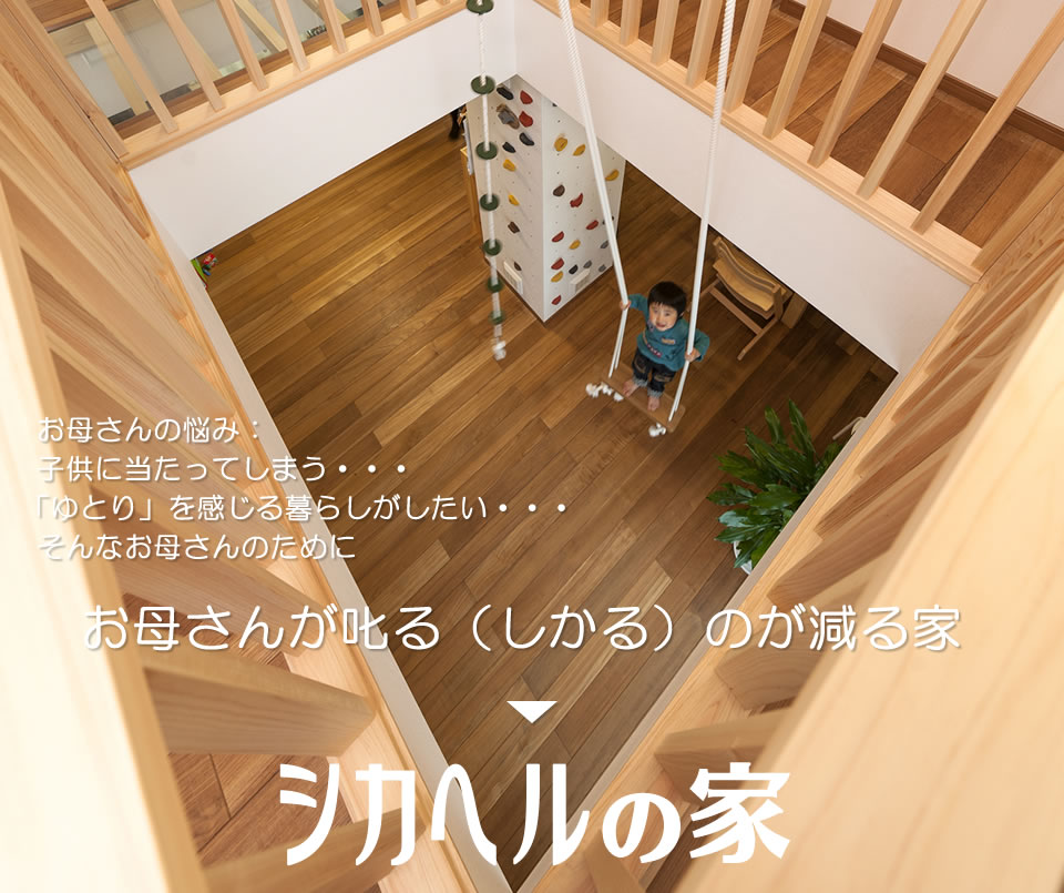 企画力、設計力を活かしお母さんのストレスを解消させる住まい、お母さんが「叱る」のがへる家「シカヘルの家」は、お母さんの笑顔を作ります。